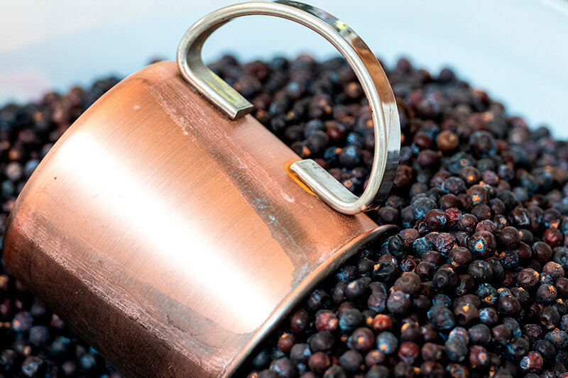 Deres fokus på råvarerne kommer også til udtryk ved, at de har fået en unik tilladelse til at plukke vilde, bornholmske enebær og slåenbær til deres produkter fra Naturstyrelsen, hvilket er en bedrift i sig selv.